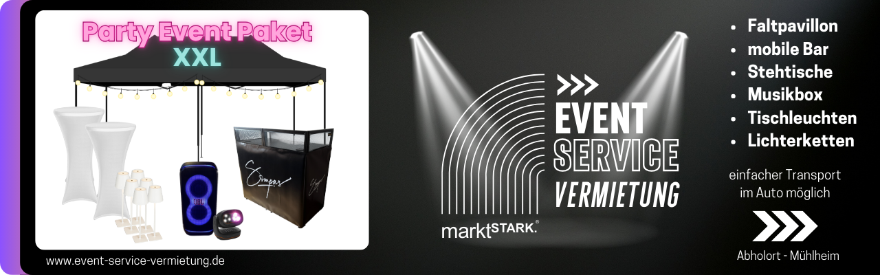 Jetzt für Ihre Party rund um Mühlheim am Main Faltpavillon, Cocktailbar, Stehtische, JBL Musikbox, JBL Partylight, LED Lichterketten und vieles mehr Abholen und mieten.